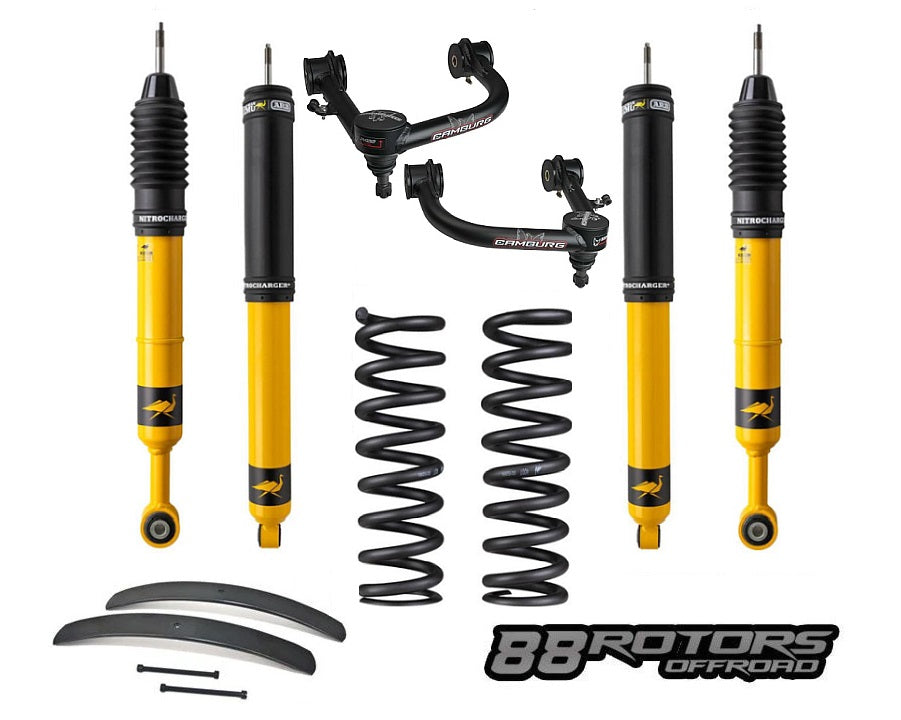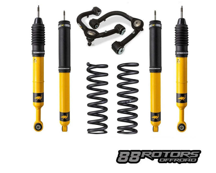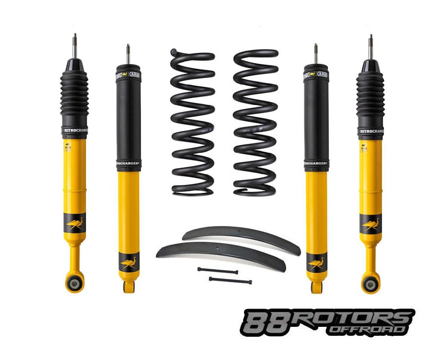 Old Man Emu offers a range of tuned and matched integrated suspension kits to ensure the right suspension is selected for how the vehicle is outfitted and the conditions it will encounter. Old Man Emu suspension systems are designed to enhance ride quality, ride control, load-carrying capacity, and ride height. When building an off-road vehicle, it's best to notate the heavy parts that you plan to add. Heavy components will slowly begin to compress your suspension which results in vehicle sag. Choosing an Old Man Emu integrated suspension kit will avoid sag and ride discomfort as our engineers have tuned and matched suspension components for a range of different weights. Old Man Emu has an offering of 3 different shock absorbers to ensure that you can find an integrated suspension kit to suit your every demand, vehicle outfit and road condition. This suspension lift kit comes with Old Man Emu Nitrocharger shocks. Nitrocharger is a twin-tube design with the outer reserve tube providing protection to the internal components off road. Nitrocharger represents an excellent upgrade opportunity for any 4WDer seeking an increase in vehicle control and comfort, increased ride height, and load carrying capability.